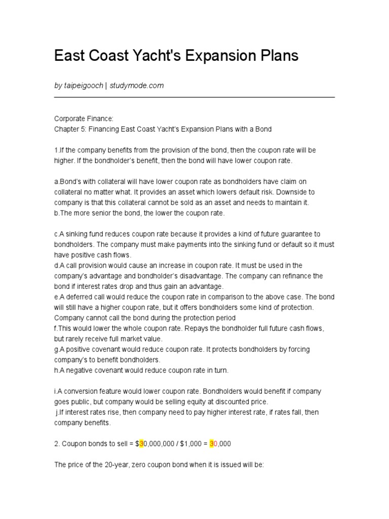 East Coast Yacht's Expansion Plans | PDF | Bonds (Finance ...